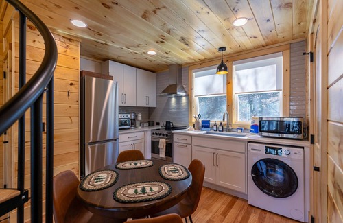 Climb the spiral staircase to the open loft where you'll find a comfortable queen bed adorned with plush linens and tasteful decor. There is also a king size sleeper sofa in the living room for additional guests! The full bathroom is located just off the kitchen on the main level.