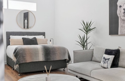 Step inside this modern studio, and you'll feel the sense of space and luxury. Walk through the galley-style kitchen to the living area and adjoining sleeping area with comfy seating and a sumptuous king bed. The outlook is to the leafy and secluded courtyard garden with BBQ, outdoor table, umbrella and, cute garden.