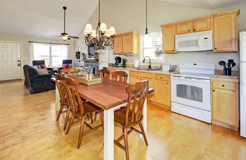 Welcome to Ridge Retreat, Your home away from home.Tucked away in the hills by the lake in this gated community you will find a three bedroom three bath home sleeps 8 guests not including the crib. Inside you will find large vaulted ceilings stylish decor and a fully stocked kitchen. Outside you have access to a front porch, a deck, and balcony. These cottages book fast so don't hesitate to book today!