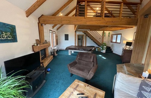 For remote workers, the home offers a fast, reliable WiFi connection and a second loft workspace with a desk positioned to take in mountain views. This area also includes a futon, offering flexible sleeping arrangements for additional guests.