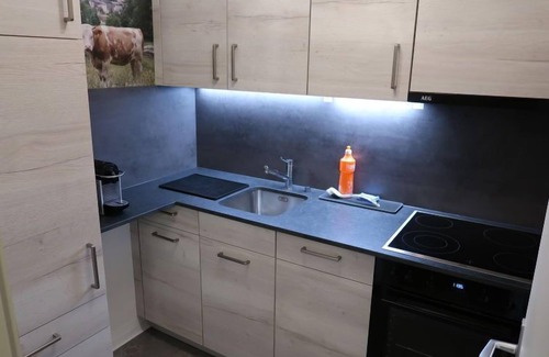 1-room apartment 50 m2 on 2nd floor. Partly renovated in 2022, cosy furnishings: living/dining room with 2 fold-away beds and cable TV (flat screen). Alcove with curtain with 2 beds. Kitchen (oven, dishwasher, 4 ceramic glass hob hotplates, electric coffee machine, Capsules for coffee machine (Nespresso) extra). Bath/WC. Balcony. Terrace furniture. View of the mountains and the valley. Facilities: Internet (WiFi, free). Please note: non-smokers only. Instead of an enclosed bedroom, some sleeping areas are located in an open-plan area (gallery, alcove, etc.).