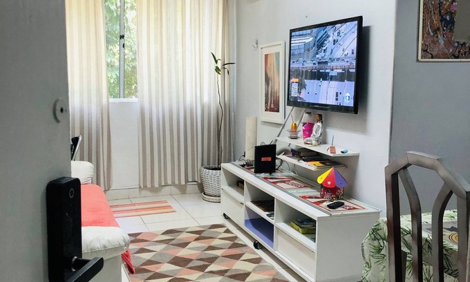 All fitted nicely decorated apartment in Riocentro, the morning sun. AP c 2 Bedrooms c double bed box in the bedrooms, bi bed in the living room, air conditioning Qto couple, ceiling fan. Wi Fi. View of the green. Impenetrable. Quiet. 1 job p car.