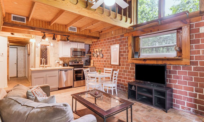 Take the road less traveled to this outdoor retreat in Fairhope! The 2-bedroom, 2-bath duplex vacation rental boasts a riverfront deck perfect for fishing. Spend your days surrounded by nature, or venture beyond the cabin to OWA Parks & Resort, Gulf Shores, or Orange Beach. When you’re ready to relax, return to a flat-screen TV, in-unit laundry, and a full kitchen.