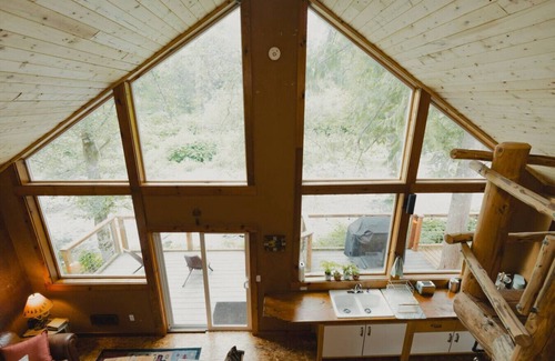 Rustic 2BR 1BA cabin overlooks the Tilton River! Relax in the covered hot tub on the deck! Enjoy the Firepit, BBQ, Wi-Fi, AC, full kitchen, Keurig & more! Custom wood details & rustic décor create a cozy cabin vibe. Wall of windows & vaulted ceilings keeps it light & airy! Surrounded by lakes, rivers & mountains for hiking, fishing & swimming! Short walk to swim hole! 45 min to Nisqually Entrance Mt Rainier Nat`l Park. The perfect place to reconnect with nature or for a couple`s getaway!