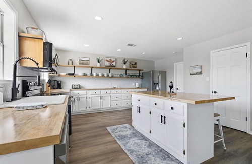 Welcome to your perfect Hill Country retreat! The Ranch House is a spacious 3-bedroom, 2.5-bath getaway offers comfort, style, and plenty of room for family and friends. In addition to the three bedrooms—one with a king bed and two with queen beds—there’s a bonus room featuring a bunk bed with a trundle, creating flexible sleeping arrangements for everyone.
