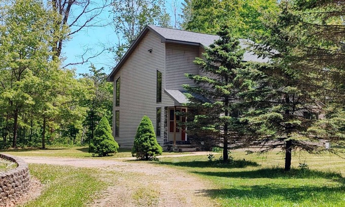 Welcome to the charming "Cottage on the Bend" vacation home, a haven for nature lovers and those seeking relaxation. Nestled on a picturesque bluff overlooking the Clam River, this delightful retreat will soon have the added beauty of fall colors, creating a vibrant and enchanting atmosphere. Observe majestic eagles gracefully soaring above the river, marvel at the diverse array of bird species against the backdrop of colorful foliage, catch glimpses of deer and other wildlife amidst the autumn hues, and try your hand at trout fishing (when in season) in the periodically stocked river. Immerse yourself in the soothing sounds of the flowing water and the rustling of leaves, providing the perfect backdrop for unwinding during this serene season.