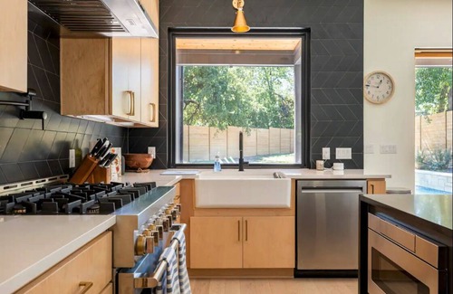 Chef's kitchen, private pool, 75" TV and sound system. What's not to love?