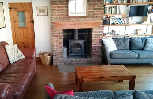 Sitting area: three 3-seater sofas, wood burner, direct access to garden, TV, sound system with iPod dock