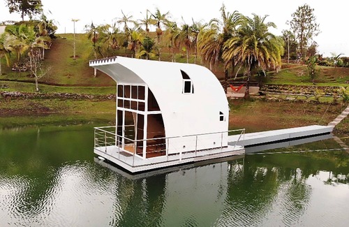 Located on the waterfront, this 1-bedroom, 1-bathroom houseboat lets you experience it all in Guatapé. Fans of nature and the outdoors will love being 11 minutes by foot from Peñol-Guatapé Reservoir and 7 minutes by car from Rock of Guatapé. With the property's convenient onsite parking, you'll be ready to make the quick 4-minute drive to Parque Comfama or the 6-minute drive to Plazoleta de los zocalos.