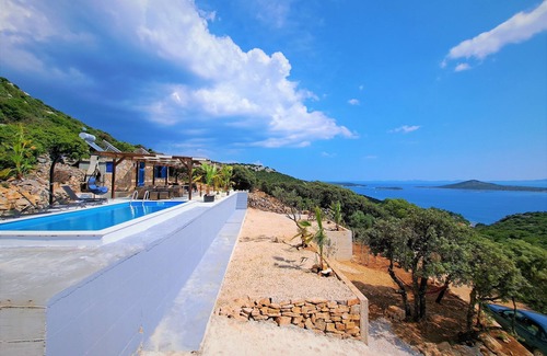 Villa Palms Kornati is stone house situated on island Pašman with a beautiful view on national park Kornati. In the front of house is big terrace with pool, so you have everything for good chill and relaxation. The villa is surrounded by pure nature and first next-door neighbor is 2 km away, so you will experience the real peace and quietness. Specialty of the day is beautiful sunset.