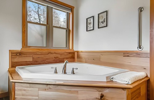 Make memories at this unique and romantic cabin! One of seven on our 5-acre waterfront lot, it’s perfect for two. Relax in the indoor Jacuzzi and unwind on the private screened-in porch overlooking the pond—the perfect spot for a morning coffee or evening glass of wine. Ideal for anniversaries, honeymoons, or a peaceful getaway!