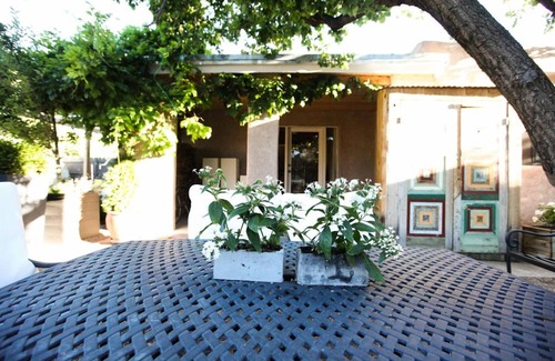 Looking for the perfect romantic Santa Fe retreat? Casa Sophia is draped in Santa Fe charm and is only a 10-15 minute stroll to Santa Fe's 400 year old central plaza where you can enjoy live music and fine dining. Walk to the local Farmers Market in the Rail Yard (only moments away) as well as Canyon Road where you can visit over 100 of the finest art galleries in the world. Experience all that Santa Fe has to offer and then come home to diamond plaster walls, wood floors, beamed ceilings and outdoor spaces secluded from the outside world. This truly unique oasis has it all with location and privacy. Drop off your luggage and pop open a bottle of sauvignon blanc and unwind in one of two serene gardens depending on the time of day.