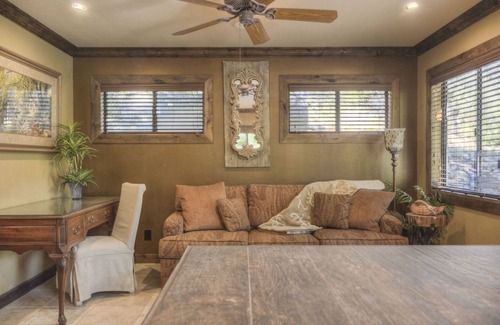 Welcome to the Lynx Creek Love Shack! Stay in a private one bedroom cottage with all the amenities! Spacious, private, tree covered yard lets you get away from the busy city life and cool down from sizzling summer temperatures. Sit and relax to the soothing sounds of your own private waterfall. Lots of windows including a skylight in the bedroom to watch the stars at night. UGG robes, fireplace, towel warmer and heated toilet seat to keep you cozy in the winter. Full kitchen, over sized shower, smart TVs in the living area and bedroom. Ethan Allen sofa with fabric ottoman to relax on. Keurig coffee machine, and full sized fridge for longer visits. Completely private front yard to relax, read a book, play a game or watch for the deer to wander by! Walking distance from the house to hiking trails including walking up to the Lynx Lake Cafe. Mountain biking on these trails is a favorite! All of this and only 10 minutes from charming downtown Prescott. Five minutes from Costco, Sprouts, Walmart and Trader Joe's for your shopping convenience. Even though you are this close to civilization, on the property you will feel like you are in the middle of nowhere!! While the Love Shack is attached to our home, it faces a different direction and has its own entrance and yard. It is completely private from our home. Property has high speed internet and streaming services only.