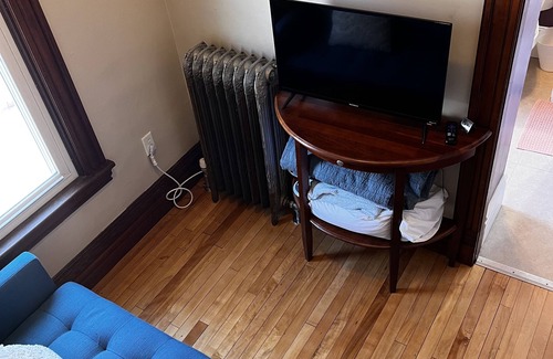 This second floor walk up apartment is in the back of a beautiful Victorian home located in the center of town. The location is a half block from Third street downtown area with shops and restaurants. This apartment comes with access to a shared fitness room and sauna area. You are 4 blocks from the sandy Lake Superior beach as well a 2-3 miles from trails, ski hill, NMU, hospital and 2 blocks from Blackrocks brewery tasting pub. The Apartment is a studio with mini kitchen with cooktop, microwave, small fridge, coffee pot, and Cable TV. There is a small TV room with a futon off of the bathroom.