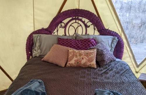 Our Yome is a unique glamping getaway in the Appalachian mtns! Full kitchen with all basics, private bathroom & an outdoor greenhouse shower with hot water! We have 11 acres with trails and a spring fed pond with BBQ pavilion for guest to use. We offer a Forage your own Lunch Tour and other experiences on our unique enchanting property.