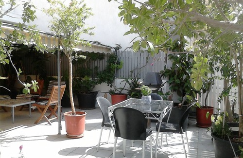 Hi, we look forward to welcoming you into our home (I am a New Zealander and my husband Yiannis is Greek). We are on the third floor (roof top), in a traditional and pretty suburb. We are slam bang in middle of all the important places you are going to want to get to. Our house is a bright, airy, mix of styles. We want you feel free and at home here. Although we are in the center of a busy city, we have built an oasis of privacy with a tall picket fence and lush greenery. We have birds visiting us and you can hear the local birds through-out the day. Our house is an eclectic mix of traditional, arty and colorful objects. It is light and airy. The veranda is approx. 55m2 and is a paradise, perfect for the morning coffee and late night drink to unwind. It is also very safe if you have children. The 2nd bedroom is also accessible from the lounge, it has a frosted glass door and curtains on that side to ensure privacy. There is everything you could possibly need in the house, from juice maker to bread maker, all cooking/serving dishes, plenty of books to read, some games, stereos etc.