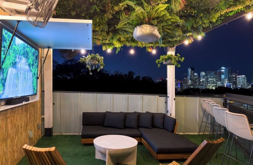 Rooftop Jungle with Skyline Views is located in Riverside. Rooftop Jungle with Skyline Views provides accommodation, featuring TV, Security/Safety, Bedding/Linens, among other amenities. This House features TV, Security/Safety, Bedding/Linens, to make your stay a comfortable one.
