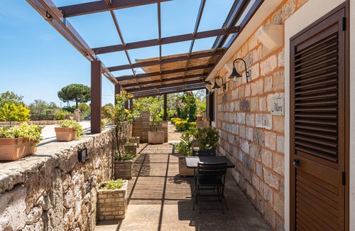 Angeli Nel Salento Country House in Santa Cesarea Terme offers you a shared terrace, a garden with barbecue, and a private park with palm and olive trees. Each unit has a private outdoor patio with table, folding chairs, and loungers for relaxing under the Salento sky.