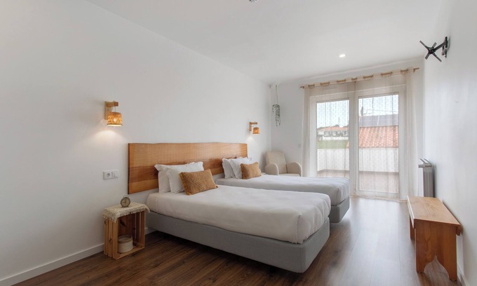 The Room Quinta dos Raposos - Suite Ar is located in Nazaré and is perfect for an unforgettable holiday with your loved ones. The 2-storey property consists of 1 bedroom and 1 bathroom and can therefore accommodate 3 people. Additional amenities include high-speed Wi-Fi (suitable for video calls), a TV as well as children's books and toys. A baby cot and a high chair are also available. This accommodation does not offer: air conditioning. This vacation rental features a private balcony ideal for relaxing evenings.