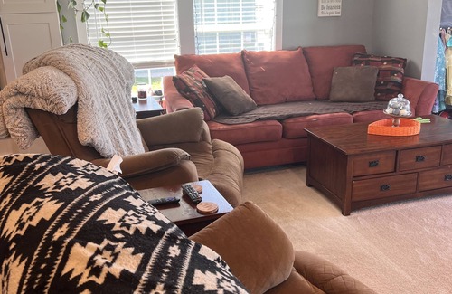 Across the street from Oneida Lake with lake rights and a PRIVATE dock for you to enjoy all sort of water activities. You can keep a row boat or canoe tied to the dock during the day weather permitting and at night it can be pulled up on shore. If you are bringing a motor boat you have to take it out of the water overnight. The State Boat Launch (no fees) is 2 mile from our house. We have a big area for keeping boat trailers. Perfect for that family staycation, relaxing getaway or just plain ole fun in the sun! Plenty of parking and lots of bedrooms space so that you can share special times and occasions with friends and/or family. Perfect location for all the 4 seasons that NY has to offer. It’s a 3 bedroom 2 bath home. The master bedroom has a king bed with a adult size cot but plenty of room to easily fit 3 or more air mattress. The master also has a profession elliptical. The downstairs has two good size bedrooms one with a queen size bed and a queen air mattress and the other has a full size bed with plenty of room for an air mattress. Each bedroom has a large flat screen TV. This is a very KID FRIENDLY house. You will have more than enough space to feel comfortable and relax.