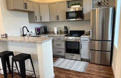 Welcome to Root City Studio, located in the heart of downtown Racine. This charming studio apartment serves as a cozy retreat for up to 4 guests. With its generously sized sleeping area, rejuvenating bathroom, inviting open living space, and a fully-equipped kitchen featuring a convenient bar seating, your stay promises comfort and convenience. Immerse yourself in the serene atmosphere created by the abundance of natural light that floods the entire space. Moreover, make the most of the studio's exceptional location by leisurely walking to nearby restaurants and savoring the delectable local cuisine. Additionally, put your mind at ease knowing that complimentary off-street parking, complete with EV charging, is available to ensure a hassle-free experience throughout your stay. Please note that this is downtown, and there may be some street noise due to the surroundings.