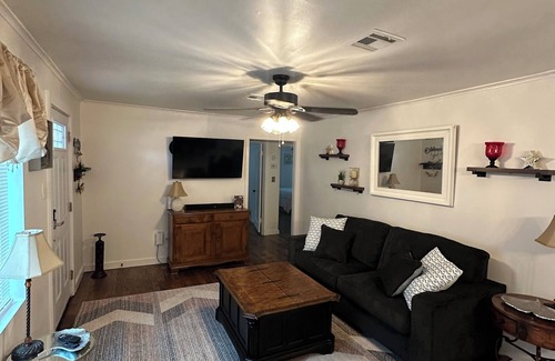 Discover the beauty of Broken Arrow from this 3-bedroom house. Each bedroom offers a different cozy bed to rest in - a king, queen, and full bed. All bedrooms have a smart TV. Enjoy the soothing atmosphere of this peaceful retreat, complete with amenities like WiFi, a washing machine, and AC. The bathroom comes equipped with a hair dryer for your convenience. We hope you enjoy what our place and Broken Arrow has to offer. Walking distance to restaurants and venues. Only one block to park, Completely remodeled with beautiful hardwood floors and new Quartz countertops throughout,