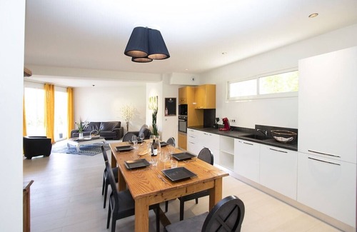 The particularly well thought out architecture of this property allows to live by having these three spaces connected together or to be able at the chosen moments to each have its independence. It is ideal with family, friends or colleagues to be able to alternate at will the shared moments and the moments of intimacy.