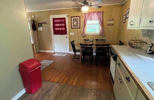 Newly updated country western theme throughout the house. 3 private bedrooms: 2 Queen, 1 full beds with new medium firm mattress. Bedrooms have surge protectors for C-pap, alarm clocks, phone chargers, charging ports. A/C unit in warm weather. 1 bathroom with shower head in bathtub. Kitchen is equipped for those who like to cook. You can watch wildlife play on the hill from the kitchen windows. Washer and drier are in the basement. Bring your own laundry essentials. Fire pit is located in the backyard. Firewood provided. Living room has a large picture window for viewing wildlife and the panoramic view of Jefferson National Forest. Trout fish from Big Wilson Creek. BWC is walking distance.
