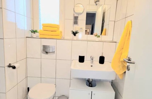 Nestled in Wiesbaden, this 2-bedroom, 1-bathroom apartment brings it all within your reach. Fans of nature and the outdoors will love being 2 minutes by car from Rhine and 6 minutes from Spa Gardens Wiesbaden. Let your feet make short work of the 15-minute walk to Biebrich Palace or easily tackle the quick 5-minute drive to BRITA-Arena. If you're looking to expand your horizons and see other nearby locales, you can catch a train at Wiesbaden Biebrich Station, located within a 5-minute walk of your stay.