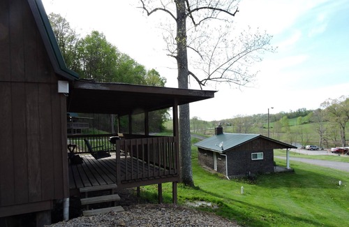 This delightful cabin rental lies on 40 acres of scenic wooded area with a 3 acre lake in the heart of Monroe County, Ohio, and is under 10 minutes from the county seat Woodsfield, Ohio, that offers many local shops and dining options. Enjoy the lake with Catch and release fishing or peddle boat use with waiver signed. Warm up next to a toasty fire using the shared burn ring by the lake.