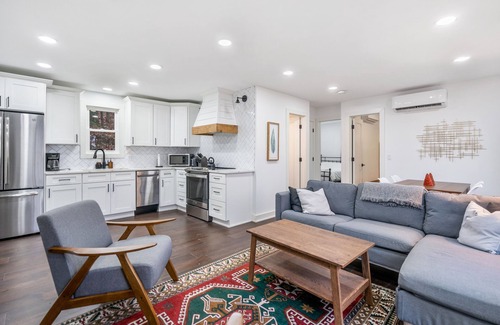 The kitchen is wide open to the rest of the living space, creating the ideal spot to cook a full-course meal for the entire gathering, while still entertaining in the living space. With new modern appliances and tons of seating, and plenty of room for the entire gathering to enjoy.