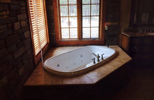 There are five bedrooms including two master bedrooms with en-suite bathrooms. The Jacuzzi in master bedroom one is a perfect place to soak and relax after an active day. All of the bedrooms are large and spacious with ample room to accommodate multiple guests. If an indoor privacy break is needed from the rest of the family/group, there is an upstairs loft where you can settle into an easy chair or sofa and read a book or just gaze out over the meadow. Parking is in front of the Lodge, there is a garage but it contains the owner's personal items and is not available to guests.