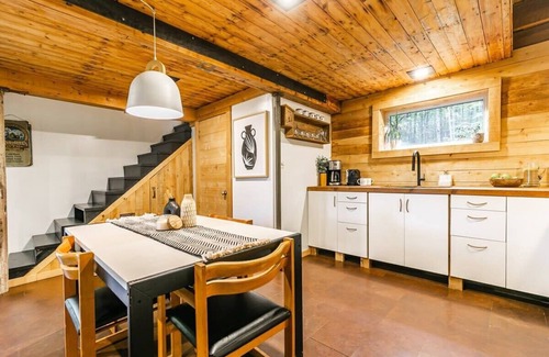 - Relax in a rustic cabin with charming decor and original historic features.