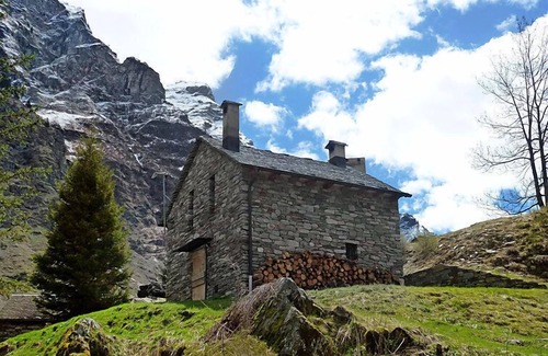 "Rustico Dara Cotta", 3-room house 80 m2 on 2 levels. Beautiful and cosy furnishings: open living/dining room with open-hearth fireplace and satellite TV. Exit to the garden. Open kitchen (4 hot plates, oven). Upper floor: 2 rooms, each room with 2 beds. Shower/WC. Gas heating, wood heating. Terrace furniture. Very beautiful view of the mountains, the countryside and the river. Facilities: logs (extra). Maximum 1 pet/ dog allowed. Note: Power is supplied by a solar panel and generator! Stove and fridge are gas-operated. Electrical appliances over 250W can not be operated. Note: Mountain road 15 km from Malvaglia real time 25 minutes. NL-00004007