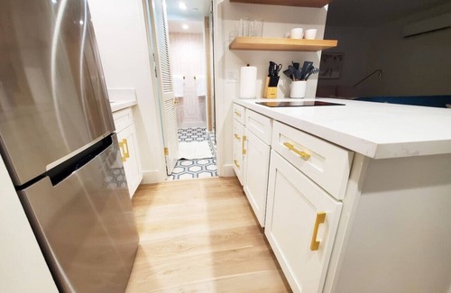Our unit provides basic kitchenware (including pots, pans, plates, cups, bowls, knives, and wine glasses) along with appliances such as a coffee maker, iron, and hairdryer. We also offer a starter pack of toilet paper and basic cleaning supplies like dish soap, paper towels, general cleaning products, and trash bags. Please note that guests are responsible for replenishing these supplies as needed.