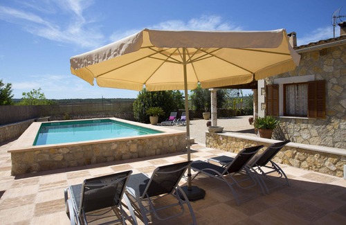 DESCRIPTION: Sa Rota is a holiday villa for 6 people in Ariany with pool and internet. The villa is situated on a 5500 m2 plot of land with a living surface of 112 m2 on one level. The open kitchen has a ceramic hob, dishwasher and the necessary small appliances. The living room has ASTRA SAT.-TV, wifi internet, a dining table and access to the covered terrace where you will also find the brick barbecue. There are 3 bedrooms and two bathrooms with shower. The pool with salt clorination 9x4, 5m with a depth of 120-170cm, an outdoor shower is located next to the pool. The vegetables grown in the garden is available to guests.