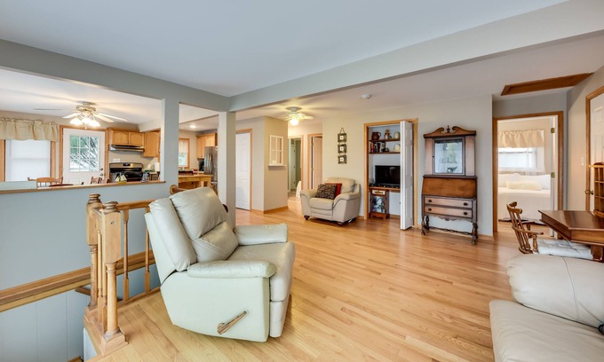 Experience Wisconsin's natural beauty at this Salem vacation rental! Boasting a convenient location near Paddock Lake, this 4-bedroom, 2-bath home offers easy access to outdoor adventures. Spend your days fishing and swimming at the nearby beach, or hit the slopes at Wilmot Mountain Ski Resort in the winter months. After active days, cook a delicious meal in the full kitchen, then dine al fresco on the private deck while enjoying the property's peaceful lake views.