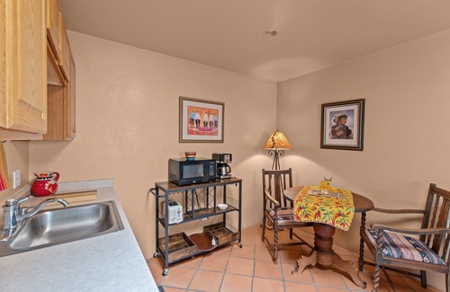 This charming casita is located minutes to downtown Wickenburg. It includes Queen bed w/ luxury bedding and linens and all the amenities needed for your stay. Kitchenette includes: refrigerator, microwave, toaster, coffee maker etc. Have your morning coffee on the private patio. Outdoor covered patio with BBQ. Horse CORRALS available upon request. Three large corrals are located just below casita. Additional fee for horse corrals to be paid in cash upon arrival to owner.