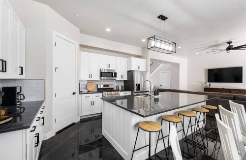 The kitchen comes fully equipped with everything you will need to cook and create family meals, along with plenty of space for everyone to sit. There are plenty of TVs and sitting areas for everyone to spread out, and even some retro video games to play together. There are extra blankets, pillows, and everything you need to make your stay comfortable.