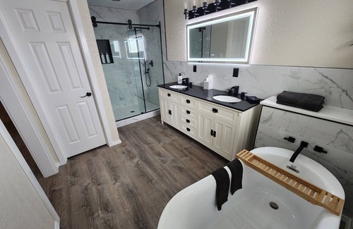 This modern farmhouse is perfect for weekend getaways or long term stays. With a pool table and open layout the house offers the comfort of home with a vacation vibe. Stream Netflix, enjoy a game of pool, or sit in the quite backyard. This stylish space can host your group of up to 6. All this only minutes from Albuquerque.