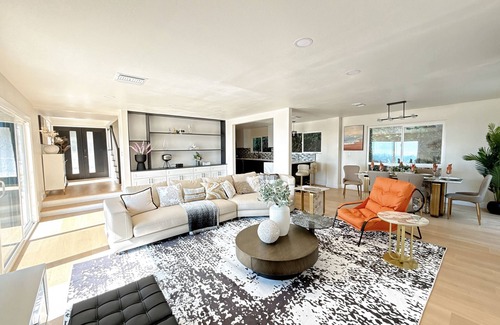 Each morning, wake up to breathtaking 180° views of the Pacific Ocean, LA skyline, and sparkling city lights. The open, sun-filled layout makes it easy to gather as a family—whether you’re cooking breakfast in the modern kitchen with brand-new appliances, enjoying a meal together at the dining table, or winding down in the cozy living area.