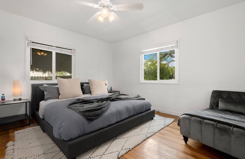 The two homes are on two corner lots - connected by an interior gate. Total accommodations include 6 bedrooms, 4 baths, with option for an additional sleeping area. The .75 acre dual property provides great outdoor space for family fun including lawn areas, two jacuzzi spas, outdoor lounging, and BBQ grills.