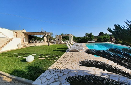 A few steps, lovely equipped equipped gazebos where the wonderful private swimming pool with whirlpool complete with sunbeds and deck chairs, reading area and barbecue area, all surrounded by plants typical of olive trees and prickly pears, enclosed in the typical dry stone walls, heritage of the 'Unesco.