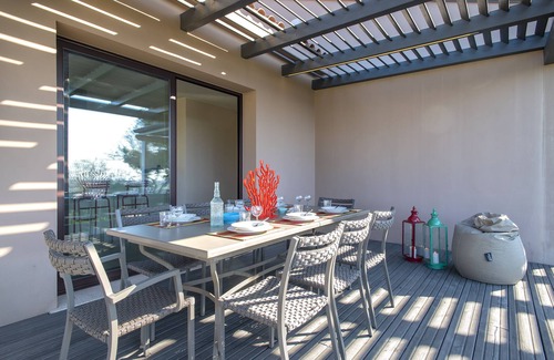 The villa, characterized by modern wooden architecture that marries linearity and minimalism, with an interior design with an oriental touch, is immersed in the silence and unique nature of Sardinia. It is strategically positioned and offers a spectacular panoramic view over the entire Gulf of Alghero.
