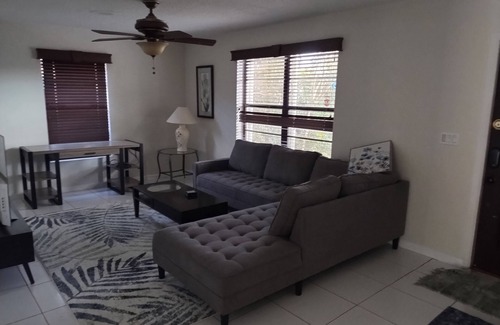 Enjoy all of Delray without the high prices. This home is nice and clean with a new Deck for grilling and chilling. Located in a quiet safe suburban neighborhood. 3 bedrooms and 2 full baths baths with dining area, two desks for working and and full kitchen with are basic amenities. Tastefully decorated and furnished with new area carpets and fenced back yard and garage. Great for short stays, corporate housing or Traveling nurses.