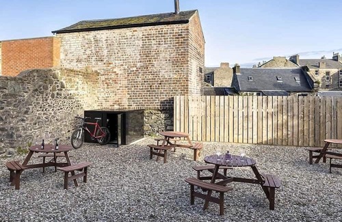 The property has acommunal private walled back garden with picnic benches, garden bike lockers with e-bike charging socket (2 bikes per locker, personal padlock required). We have acommunal laundry cupboard which includes awashing machine/tumble dryer which can be used from 8am - 10pm daily. (guest will supply own detergents etc).