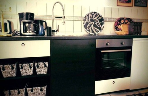 Relax in the garden (enjoy the outdoor furniture!) of this 474-sq-ft apartment. As for the great indoors, you can come inside and enjoy the free WiFi.