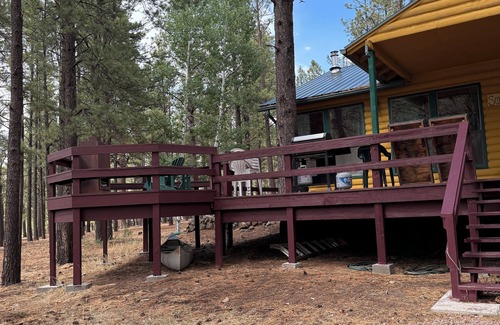 Welcome to Scout’s House named after our youngest dog, don’t tell the other two :). Yes we are dog friendly! This “mellow yellow” hidden gem is nestled on two private acres of land. Beat the hustle and bustle and enjoy the tranquility that Greer has to offer. Cozy up next to the indoor fireplaces make smores on the outside deck, star gaze in Arizona’s top rated dark skies, or enjoy the famous prime rib at Molly Butler’s. SURROUNDING LAND: