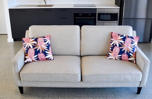 This purpose built beach house easily sleeps 12, with 5 bedrooms, 3.5 bathrooms & 2 living areas (both with full kitchen facilities), making this high-end beach house an ideal getaway for 2-3 families in comfort and style. The resort style warm outdoor shower & bath will be irresistible when you return from the beach!