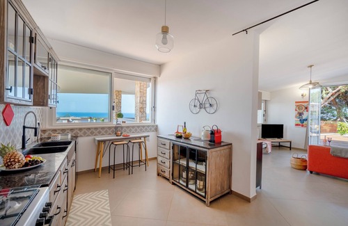 Villa Losino is a beautiful sea view villa with private pool and playground, located just outside the town of Polignano a Mare, a few kilometers from the main tourist attractions of Puglia. It is located just 3 km from the sea and the city center, in the quiet countryside of Puglia, surrounded by 5000 square meters of private land with all kinds of fruit trees, tall pines and palm trees, and a characteristic rock garden. Its location in the hills guarantees a perfect temperature in every season. It has an area of 150 square meters, and is equipped with a sea view pool 7x9 meters, deep from 1.30 meters to 3 meters, where the blue of the pool blends with the blue of the sea! Around the pool there is a relaxing stone paved solarium area with comfortable sun beds and furnishings. Complete the exteriors, a large barbecue area and playground. The property is completely fenced, has electronic gate, alarm system, parking area,external video surveillance that can be deactivated upon arrival at the request of customers. VillaLosino is divided on two floors, on each floor there is an apartment; ANYWAY THE VILLA IS RENTED TO ONLY ONE GROUP OF GUESTES, SO THERE ARE NO SHARED ZONES. On the ground floor there is a small apartment with double bedroom, bathroom with shower, living room with kitchenette arranged for breakfast. On the first floor there is the larger apartment with a double bedroom, a bedroom with 3 beds (single plus bunk bed), a bathroom with shower, a large living room, and the wonderful fully equipped kitchen overlooking the sea on the veranda.